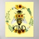 Abelhas poster com abelha pintada e girassóis para ajudar a encorajar e promover a bondade, presente de arte para apicultores, ou para alguém que apenas ama abelhas, salas de aula e muito mais.