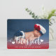 Anuncie a chegada do seu novo bebê com este doce anúncio de nascimento de bebê. A palavra "abençoado" em escrita branca com dois corações e um design de fundo ombre vermelho com a sua foto de bebê é uma design perfeita para mostrar a sua filha ou filho. Adicione o nome do seu bebê e a informação de nascimento nas costas com os seus nomes familiares e texto. Elke Clarke © Outras cores disponíveis no nosso compro em www.zazzle.com/epclarke