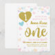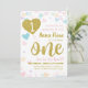 Abençoa o seu pequeno coração no primeiro aniversário O convite apresenta os corações de confete de pastel macio com texto de brilho dourado