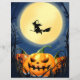 Abóbora Assustadora do Halloween com Lua e Bruxa