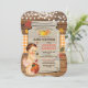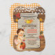 Com folhas de outono, abóbora, jarra de pedreiro e design de corda sobre fundo de madeira rústica e uma imagem de boneca de bebê fofinha.