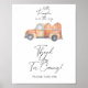 "Um pequeno Pumpkin está a caminho!" Convite para abóboras de aquarela com um caminhão cor de laranja cheio de abóboras. Itens correspondentes disponíveis.