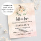 Um fundo de rosa dourado e gradiente cor-de-rosa esmagado, decorado com uma abóbora e flores de cor creme. Personalize e adicione o nome e os detalhes da festa. Texto: apaixonar 1 folha = 1 convite impresso de ponta a ponta.