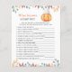 "Uma pequena abóbora está a caminho. Celebre com este tema de abóbora de desenho animado para festa de baby shower! Abóbora kawaii de desenho animado fofa com chapéu de outono (boné) e folhas de outono. No verso do cartão há folhas de outono.