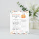"Uma abóbora está a caminho. Celebrar com este filhote de abóbora de desenho animado temido para festa de chá de fraldas! Bomba de desenho agudo kawaii, de cor aquosa, com chapéu de outono (boné) e folhas de outono. No verso do cartão estão as folhas do outono.
