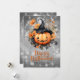 Feliz cartão de Dia das Bruxas com uma abóbora vestindo um chapéu preto e cercado por flores laranja e verde. Personalize facilmente este cartão de Dia das Bruxas com seu nome e texto de família.