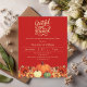 Uma cor vermelha de fundo profunda. Decorado com abóboras e flores laranja e amarelas. Personalize e adicione os detalhes da festa. Script de texto: Grateful e abençoado. 1 folha = 1 convite impresso de borda a borda.