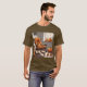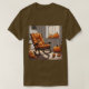 Pumpkins em uma camisa marrom da janela Esta é uma camiseta de arte digital de abóboras. A camiseta é uma camiseta masculina marrom. A imagem mostra abóboras numa sala de cinzas. Há abóboras na janela, abóboras no chão e uma abóbora numa cadeira de balanço. A imagem da t-shirt parece acolhedora. A camisa é uma camiseta unística que homens e mulheres podem vestir.