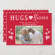 Abraço e beija o cartão com fotos do dia do Namorados. Corações cor-de-rosa em fundo vermelho com um modelo de foto. Cartão de dia de Namorados de família bonito e adorável. Personalize com sua foto e texto.