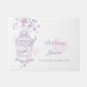 Casal de pássaros bonitos em desenho gráfico de linhagem de gaiola de pássaros aberta pendurada em uma primavera com corações florescente. Design de casamento moderno e fascinante da gaiola de pássaros, papel de carta de casamento romântico. Bonito cor púrpura e rosa suave. Edite esta porta com seu próprio nome e datas de casamento. Ideal se você está tendo uma recepção de casamento em sua casa ou para dar como presente aos recém-casados. Desenho exclusivo e design por Sarah Trett.