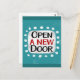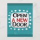 "Abrir uma Nova Porta" é uma citação inspiradora ou motivacional bonitinha com uma forma de sotaque branca cercada por pontos brancos texturizados.