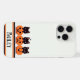 Três adoráveis gatinhos pretos a espreitar de jack-o-lanternas, cada um com uma expressão brincalhona. Uma cena fofa do Halloween com abóboras e morcegos minúsculos, perfeita para uma vibração festiva.