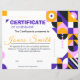 A bold abstract geometric certificate of achievement featuring vibrant purple, yellow, and modern artistic shapes. This contemporary award certificate design is perfect for corporate recognition, creative events, school achievements, and employee appreciation. The stylish layout combines artistic geometry with a professional structure, making it ideal for modern companies, organizations, and educational institutions seeking a unique and eye-catching award certificate.