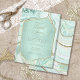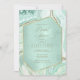 Você tem o glamour e o alto impacto com este conjunto de casamentos coordenadores que apresenta padrões abstrato agate, texturizados com falso-cristais e destaques em folha de ouro falso e brilhante. Combinações de cores impressionantes, como esta suíte com sua paleta de pasta mole de verde-menta a azul-lacrimogêneo, criam o fundo das peças dessa coleção coordenada. Este Chá de panela elegante apresenta tudo isto com um rótulo hexágono e semitransparente em verde-menta para guardar o seu texto. É fornecido um modelo para adicionar facilmente os detalhes do evento. Veja o link de coleção nesta página para ver todos os itens correspondentes neste belo design ou ID827 de pesquisa para ver opções de cores adicionais para este design.