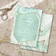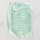 Você tem o glamour e o alto impacto com este conjunto de casamentos coordenadores que apresenta padrões abstrato agate, texturizados com falso-cristais e destaques em folha de ouro falso e brilhante. Combinações de cores impressionantes, como esta suíte com sua paleta de pasta mole de verde-menta a azul-lacrimogêneo, criam o fundo das peças dessa coleção coordenada. Este elegante convite de janto de ensaio apresenta tudo isto com um rótulo hexágono e semitransparente em verde-menta para guardar o seu texto. É fornecido um modelo para adicionar facilmente os detalhes do evento. Veja o link de coleção nesta página para ver todos os itens correspondentes neste belo design ou ID827 de pesquisa para ver opções de cores adicionais para este design.