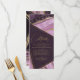 Você tem o glamour e o alto impacto com este conjunto de casamentos coordenadores que apresenta padrões abstrato agate, texturizados com falso-cristais e destaques em folha de ouro falso e brilhante. Combinações de cores impressionantes, como esta suíte com sua paleta luxuosa de uva mutada e mauve a rosa-orquídea macia, criam o fundo das peças dessa coleção coordenada. Esta segunda versão do nosso menu de recepção de casamento apresenta todas as opções acima, além de uma elegante caligrafia em uma etiqueta angular semitransparente para manter suas seleções de menu. É fornecido um modelo para adicionar facilmente os detalhes do menu, as iniciais e a data do casamento. Veja o link de coleção nesta página para ver todos os itens correspondentes neste belo design ou ID827 de pesquisa para ver opções de cores adicionais para este design.