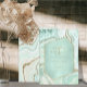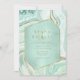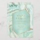Você tem o glamour e o alto impacto com este conjunto de casamentos coordenadores que apresenta padrões abstrato agate, texturizados com falso-cristais e destaques em folha de ouro falso e brilhante. Combinações de cores impressionantes, como esta suíte com sua paleta de pasta mole de verde-menta a azul-lacrimogêneo, criam o fundo das peças dessa coleção coordenada. Este elegante convite de casamento mostra tudo isso com um hexágono, semitransparente em tons de menta, para guardar seu texto. É fornecido um modelo para adicionar facilmente os detalhes do evento. Veja o link de coleção nesta página para ver todos os itens correspondentes neste belo design ou ID827 de pesquisa para ver opções de cores adicionais para este design.