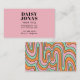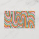 Um cartão de visita do estilo abstrato, estilo 70, com linhas de luz abstrato e um tipo retrorreflector desajeitado para o seu nome. Cor-de-rosa sólida na frente com cores e negrito em tons de verde azul, laranja, rosa no verso.