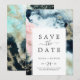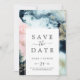 Esta abstrato celestial salva a data do anúncio é perfeita para um casamento moderno. O design elegante e elegante apresenta azul marinho escuro e cor-de-água rosa pincelada com salpicos de ouro, criando um espaço externo e o céu noturno.