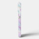 Um design de fenda abstrato em uma paleta roxa, turquesa, marfim e branca.
