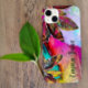 Esta capa de telefone de arte natural é uma explosão de cores maravilhosas. O fundo começou com um design de tinta a álcool que sofreu uma incrível transformação dos boques. Folhas coloridas surgem do lado esquerdo do caso. A folhagem vibrante se mistura maravilhosamente com a bonito arte de fundo. As cores incluem violeta, cor rosa fuchsia, ouro amarelo, turquesa, azul aqua, pêssego, rosa vermelho e roxo escuro. Há um modelo para um nome ou iniciais. Se preferir este caso sem texto, ele é facilmente removido.