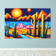 A pintura de canvas retrata uma paisagem desértica com um céu vibrante à luz do crepúsculo no estilo distinto do Cubismo. A composição apresenta formas fragmentadas e geométricas que reimaginam a representação tradicional do deserto e do céu. As cores do céu crepúsculo são ricas e vibrantes, criando um contraste impressionante contra as tonalidades arenosas da paisagem do deserto. A abstração Cubista captura a essência do deserto, infundindo-o com energia e dinamismo. A pintura convida os espectadores a explorar a cena a partir de múltiplas perspectivas, engajando sua imaginação e permitindo-lhes interpretar o céu do deserto e do crepúsculo de sua maneira única. Esta trabalho de arte inspirada em Cubist traz um ambiente cativante e surreal a qualquer espaço, acrescentando um toque de intrigas artísticas e evocando uma sensação de maravilha pela beleza da natureza.