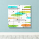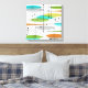 Canvas moderna do século médio, quadrados abstrato coloridos e fungos em tons de vermelho, amarelo, castanho, verde e preto. Uma adição perfeita ao estilo do seu meio século.