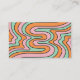 Um cartão de visita do estilo abstrato, estilo 70, com linhas de luz abstrato e um tipo retrorreflector desajeitado para o seu nome. Colorido e ousado em tons de azul verde, laranja, rosa.