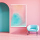 Uma pintura de tinta aquosa original por Pip Gerard (Pip Pip Pip Hooray). Analisado em alta resolução para garantir impressão de qualidade. Moderno, abstrato, ombre, gradiente, tons, rosa mole e azul aqua