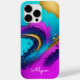 Personalize o nome em um script branco no abstrato líquido em ouro, preto, mauve, lacre e azul. Versão 2. "Editar usando a ferramenta Design" para alterar cores e digitar estilos.