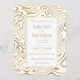 Traços ondulados de folha de ouro, mínimos e elegantes, que reproduz o padrão de mármore líquido de pintura, apresentando uma coleção de várias linhas onduladas e círculos com traços irregulares de design de artística amarelo brilhante de fluido de ouro, sobre um simples fundo branco. Na moda abstrato, excelente para decoração minimalista com um toque de luxo de ouro.