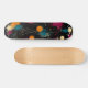 Este ousado baralho de skate de expressionismo é uma fusão dinâmica de cores vibrantes e pinceladas enérgicas, contra um fundo preto dramático. Apresentando salpicos de sotaques de ouro, cor de laranja, magenta e surpreendentes, este design capta a essência bruta da arte moderna. Perfeito para os skatistas que abraçam a criatividade e a individualidade.