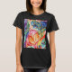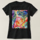 Esta é uma camiseta Habatour Creations, para mulheres, decorada com um autêntico trabalho de arte de superfície digital multicolorido abstrato, inspirada pelas flores Copyright de @Habatour Creations Copiar ou usar sem permissão é ilegal