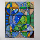 Poster geométrica abstrato inspirada na natureza, lembrando rios e folhas e fotos em câmara de nuvens.
