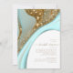 Este conjunto de design, com seu padrão abstrato de ondulações e veias fluentes de ouro reluzente, traz à mente formações rochosas atraentes, dunas de areia fluidas, e ondas suaves do oceano. As cores marcantes do mar e da areia para esse conjunto contribuem para o apelo. O Chá de panela mostrado aqui tem todas as informações acima com um modelo para adicionar facilmente seus detalhes de evento. Procure ID903 para ver outras opções de cores e peças de coordenação para esta coleção de casamento única.
