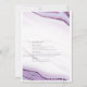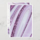 Este conjunto de design de casamento, com seu padrão abstrato de ondulações e veias que fluem de ameixa brilhante, traz à mente formações rochosas que chamam a atenção e gemas cintilantes. A paleta de cores impressionante em tons de lilac e lavanda a soft periwinkle acrescenta ao apelo. O menu de recepção mostrado aqui tem tudo o que está acima em um fundo branco com um layout que o faz sobressair da multidão. Adicione facilmente os detalhes do menu usando o modelo fornecido. Procure ID903 para ver outras opções de cores e peças de coordenação para esta coleção de casamento única.