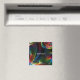 Abstrato, multicolores sobre fundo preto, modelo de ímã refrigerador. Pronto para personalizar com seu próprio texto.