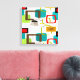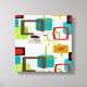 Canvas modernas do meio século, quadrados abstratos funky coloridos nas máscaras do ouro vermelho, amarelo, do marrom, do verde e do preto. Uma adição perfeita a seu estilo do meio século.