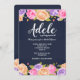 Um convite floral impressionante com um fundo azul marinho e uma abundância de rosa, de lavanda, e de flores amarelas que limitam as bordas superiores e inferiores do cartão. (Design por Freepik). <br/><br/>O cartão é fácil de personalizar com seus fraseio, pia batismal, cor da pia batismal e escolha de seis tipos de papel<br/><br/>Não exatamente que você está procurando? Todos nossos produtos podem ser projetados para encontrar suas necessidades em nenhuma sobretaxa<br/><br/>Contacte-nos simplesmente em askcottonlamb@gmail.com<br/><br/>Produtos de coordenação disponíveis: