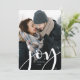 Cartão com fotos de feriado simples e elegante permite que sua foto favorita tire o palco central. O design Chic apresenta uma foto vertical ou orientada a retrato de cheio, com "alegria" sobreposta em caracteres brancos. Personalize com seus nomes ou nome da família e o ano. Cartões invertidos para um padrão de xadrez de tartan vermelho e verde.