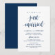 Linda caligrafia moderna casual, em tipo de letra Script azul-marinho, Anúncio de casamento, cartão de convite (acabamos de nos casar). Isto é perfeito para o seu casamento e festa de celebração pós-casamento. Adicione seus detalhes na fonte / letra correspondente.