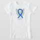 A conscientização da prevenção de bullying usa uma fita azul para sua conscientização sobre a causa. A arte da camisa apresenta uma pintura de anjo de fita azul de reconhecimento. A mensagem da camiseta do anjo de conscientização anota "Acredite na Prevenção de Bullying de Esperança". Na parte de trás da camisa está a mensagem de causa "Eu espero e apoio a consciência para acabar com o assédio". A roupa da fita de anjo de consciência azul pode ser personalizada com mensagens personalizadas para fazer roupas de evento de excelente para camisas de arrecadação de fundos, camisas de caminhada da equipe de grupo, presentes de camisetas de conscientização ou outras ocasiões especiais de eventos de causas para mercadorias que ajudem a aumentar a conscientização da causa em público para a ajuda da sociedade em criar ajuda e causar mudanças.