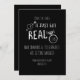 ACABOU DE FICAR REAL Cartão de Compromisso de Save The Date. O fundo pode ser de qualquer cor. Também disponível em tamanho menor e tamanho de cartão postal.