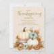 Convide os seus entes queridos a reunirem-se em gratidão com este elegante convite à celebração de Ação de Graças, disponível tanto como um cartão impresso como um download digital. O design apresenta abóboras aquarelas em branco macio, palha muda de cor e laranja quente arrumado num carrinho rústico, cercado por folhas de outono e girassóis. Um plano de fundo texturizado adiciona o encanto do eterno, enquanto o script em tons de ouro destaca os detalhes do evento no estilo. Perfeito para jantas de Ação de Graças, comemorações de Ação de Amizade ou coletâneas de outono, este convite versátil permite personalizar com suas informações de data, hora, local e RSVP. Escolha a conveniência de um arquivo digital para compartilhar instantaneamente por e-mail ou texto, ou peça placas impressas para e-mail tradicionalmente. Uma bela maneira de dar o tom para uma celebração memorável e quente de feriado.