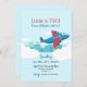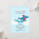 Um convite juvenil, à celebração do aniversário de um menino, caracterizando um avião vermelho e azul que voa altamente acima das nuvens. (<a href='https://www.freepik.com/free-vector/colorful-travel-banners-with-flat-design_2354152.htm'>Projetado por Freepik</a>). (<a href="https://www.freepik.com/free-vector/set-of-white-clouds_979612.htm">Projetado por Freepik</a>). <br/><br/>O cartão é fácil de personalizar com seus fraseio, pia batismal e cor da pia batismal<br/><br/>Não exatamente que você está procurando? Todos nossos produtos podem ser projetados para encontrar suas necessidades em nenhuma sobretaxa<br/><br/>Contacte-nos simplesmente em askcottonlamb@gmail.com. <br/><br/>Produtos de coordenação disponíveis: Apenas pergunte-nos!