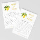 Torne o seu chá de panela inesquecível com a divertida e sentimental Aconselhamento a Lemon e Deseja o Jogo do Chá de panela. Apresentando um animado design com limões, com limões amarelos brilhantes, folhas verdes e elegantes roteiro, este jogo é um ajustado perfeito para celebrações ensolaradas e inspiradas nos citros. Convidados podem compartilhar seus melhores conselhos e desejos sinceros para a noiva em cartas lindamente desenhadas, criando um guardião que ela vai tesourar para sempre. As placas são impressas em estoque resistente e de alta qualidade para memórias fáceis de escrevendo e duradouras. Este jogo acrescenta um elemento doce e interativo ao seu chá, encorajando risos, amor e momentos significativos. Perfeito para festas de jardim, chás de verão, ou eventos temáticos mediterrânicos, é simultaneamente pensativo e divertido!"