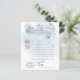 É um menino e podemos esperar muito cedo o design de texto de script "Advice" do Chá de fraldas de Espera "For the New Parents", que apresenta um ursinho de pelúcia com uma gravata de arco azul pendurada num punhado de balões de um lado com um carregando de balão de ar um buquê floral no lado direito. Bandeiras de reposição pendura entre os dois balões. Nuvens e estrelas num fundo de aquarela azul ao redor do design. A parte traseira apresenta um céu com cor d'água com bolinhas brancas e bege. Design composto por Designs Holiday Hearts. Versão em papel plano — também disponível em uma versão de convite para impressão ou download.