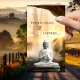 Cartão de visita com uma estátua do Buda em frente a uma cachoeira ao pôr do sol. No verso está uma imagem neutra da madeira pintada. Excelente para um conselheiro espiritual ou leitor de aura.