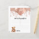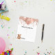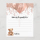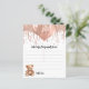 Para um Chá de fraldas. Um fundo branco na moda. Decorado com rosa dourado, pingos cor-de-rosa, pintura pingando, galhos de festas, balões e um ursinho fofo.