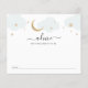 A placa de atividade do chá de fraldas apresenta nuvens azul-aquarela e estrelas douradas. O cartão de aconselhamento incita os hóspedes a partilharem conselhos para os pais se prepararem para o bebê.